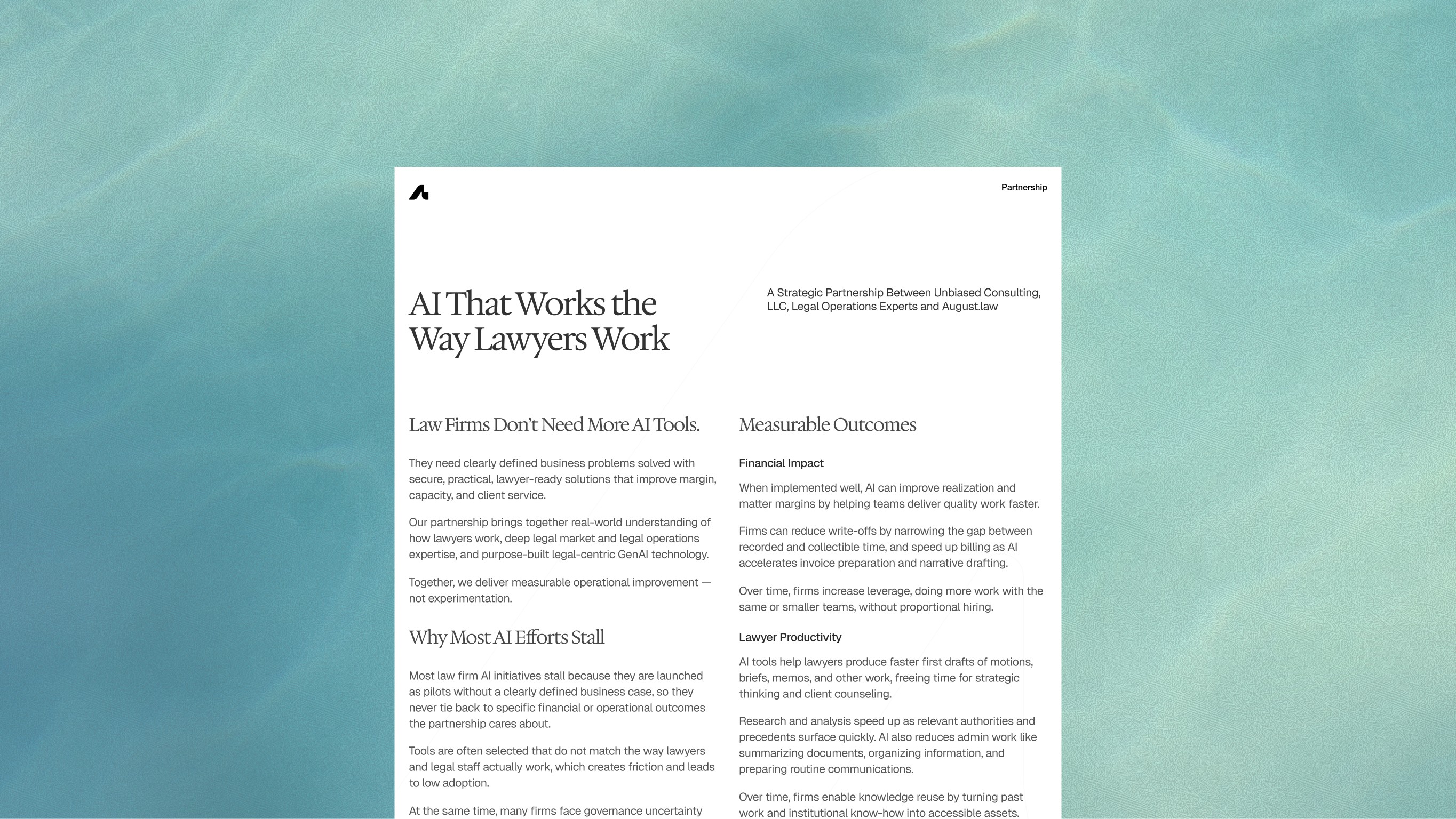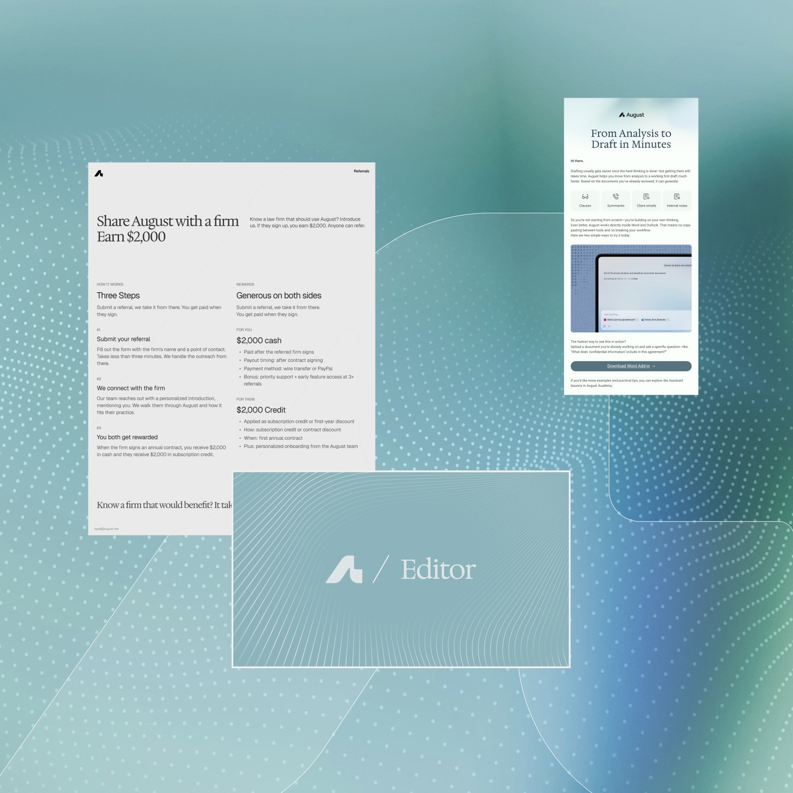 Led a brand refresh for August, creating a more modern, approachable, and distinctive identity for the Legal AI space. Built a nature-inspired design system to express clarity, intelligence, and trust.
