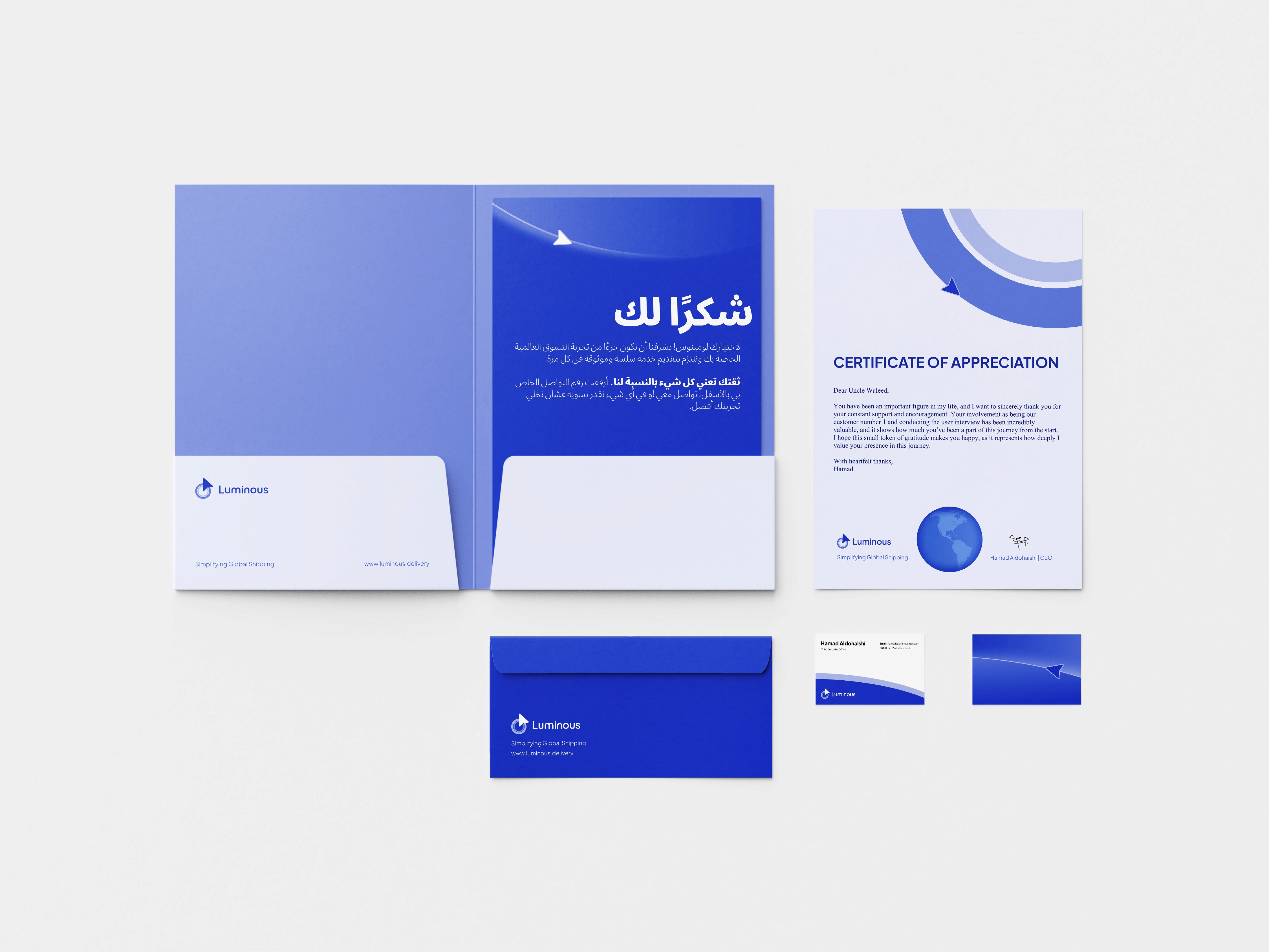 Luminous is a startup project with the vision to revolutionize U.S. package forwarding to the Gulf region through AI-powered pricing and order consolidation. As a commissioned designer, I developed a cohesive brand identity and intuitive user experience that strengthened the company’s credibility.
