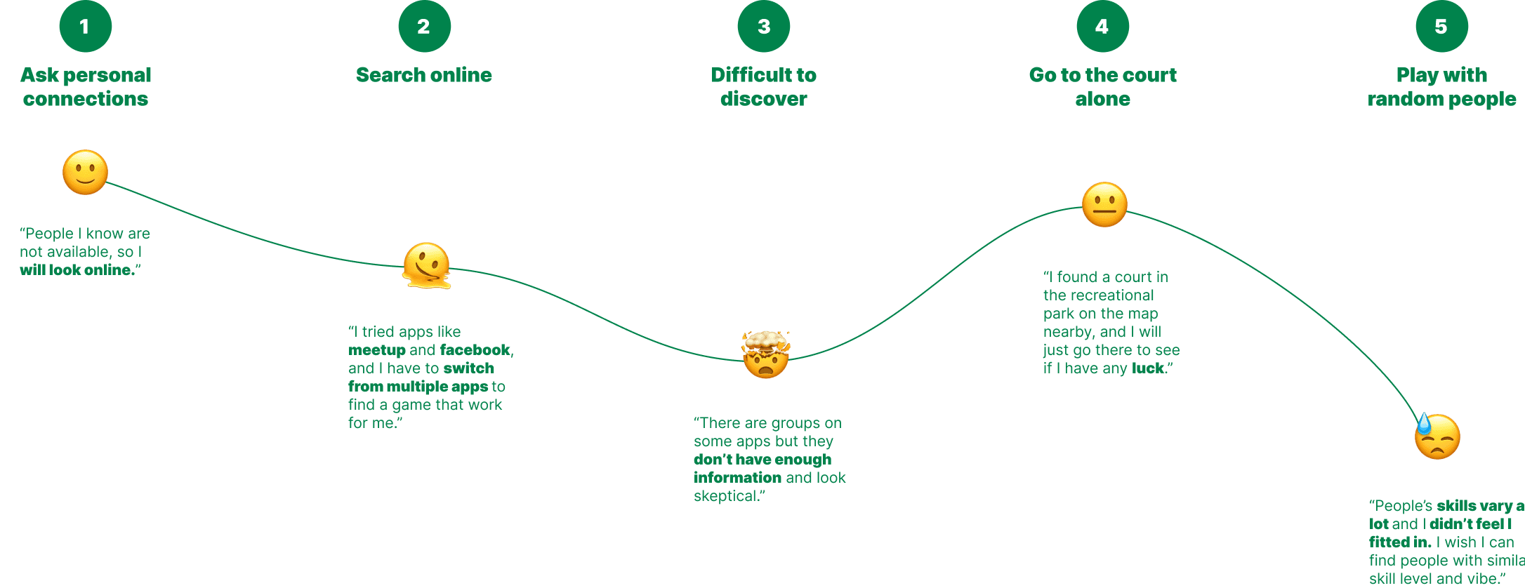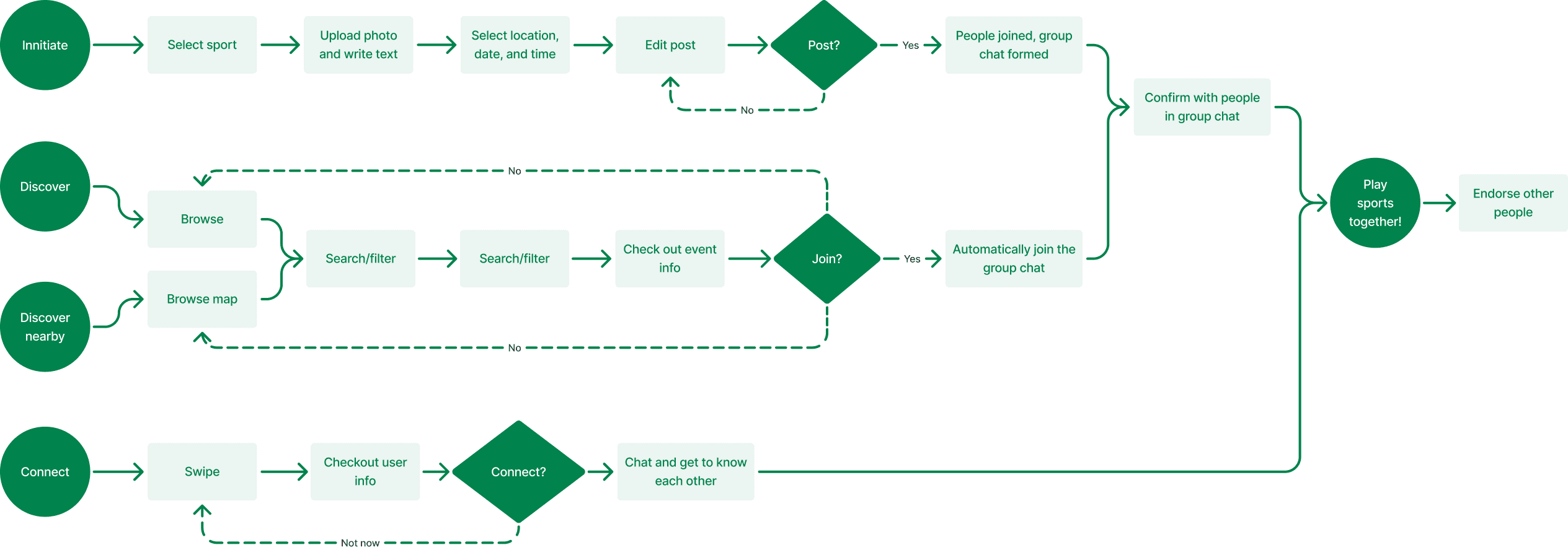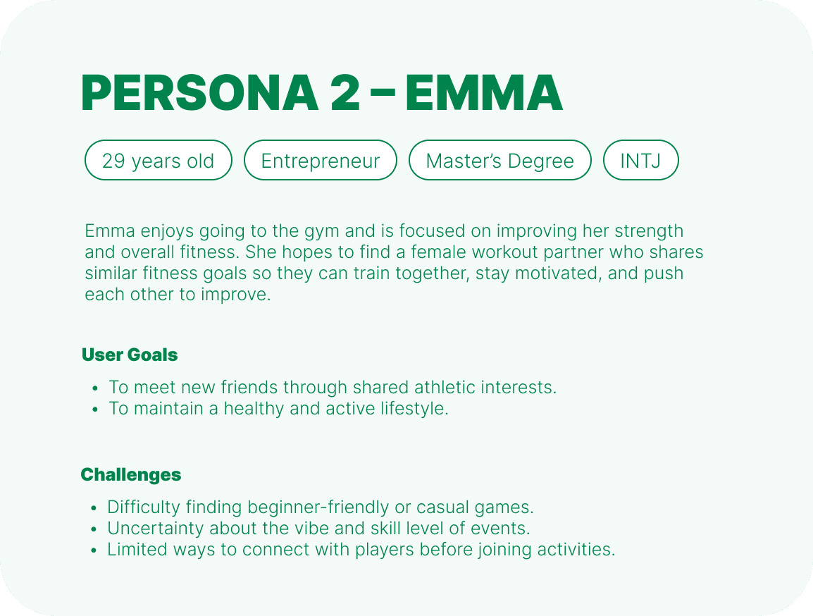 After developing the personas and user journey maps, I conducted surveys, user interviews, and competitive analysis to validate key assumptions and uncover core pain points in how users discover activities and connect with others. These research insights clarified feature priorities and product direction, providing a strong foundation for shaping the user flows and information architecture.
